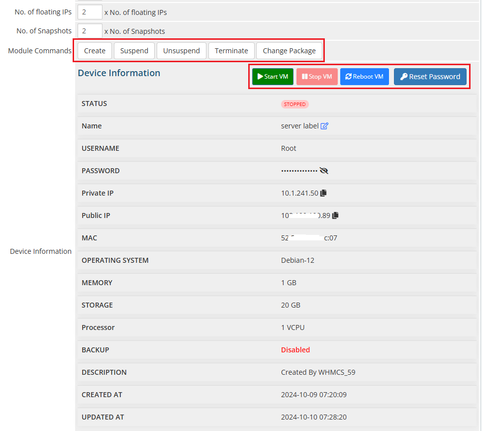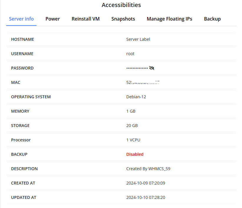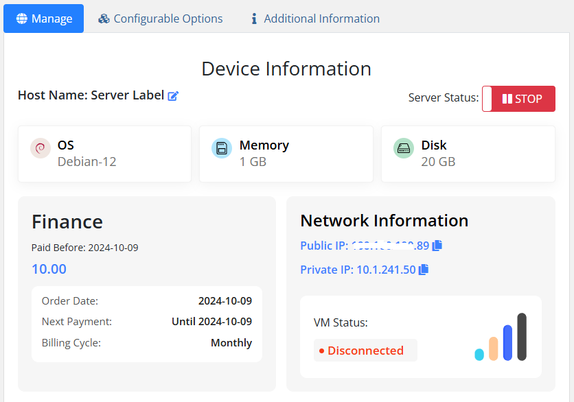 This module gives clarity for administrators by providing them with the in-depth information about each and every server, including status, hardware specification, and other important factors.Clients can access comprehensive details about their virtual private servers ( VPS). This feature ensures clients can easily track and monitor their server’s performance with a single click.