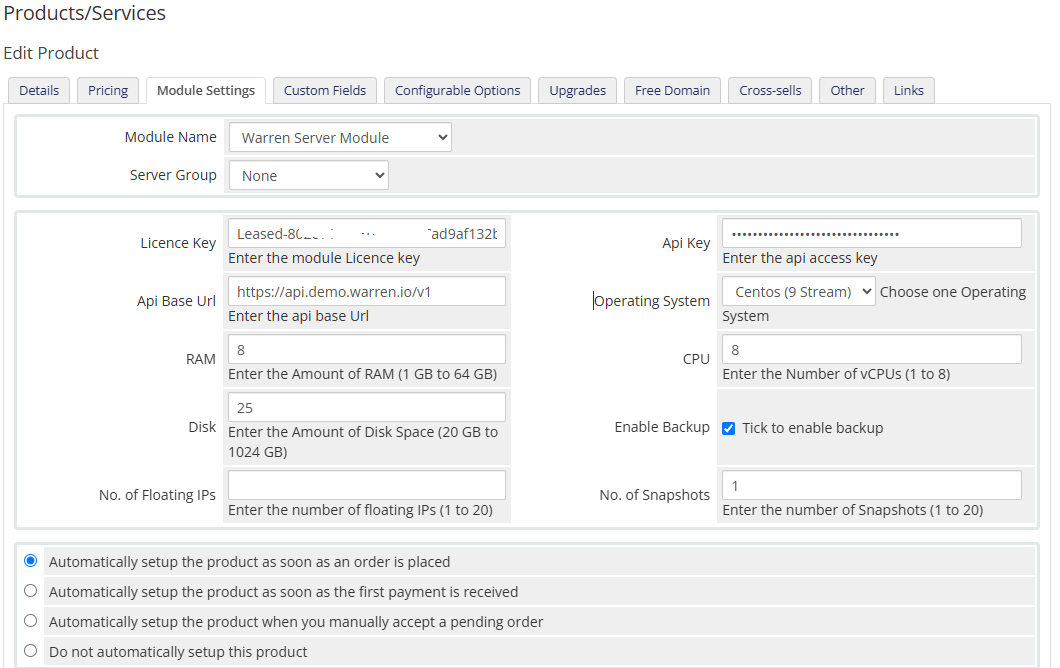 The Warren cloud VPS WHMCS Module is a significant solution designed and developed to manage and organize cloud virtual private server directly from the WHMCS platform. It offers an array of features for administrators and clients, streamlining VPS management tasks and providing a seamless user experience.