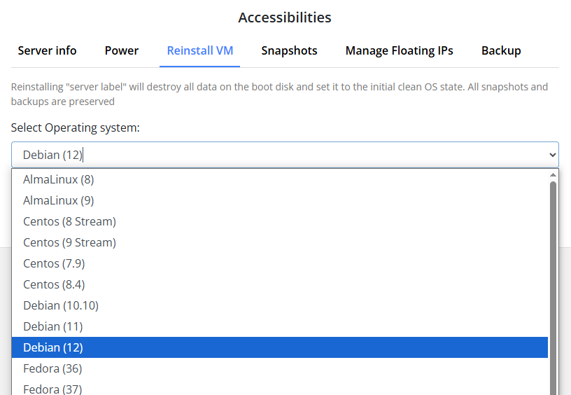 Clients can reinstall their virtual machine directly from the client area. By using this option clients can do a clean install of the server’s OS or revert it back to its original state. It is particularly useful for resolving issues or starting with a fresh setup.