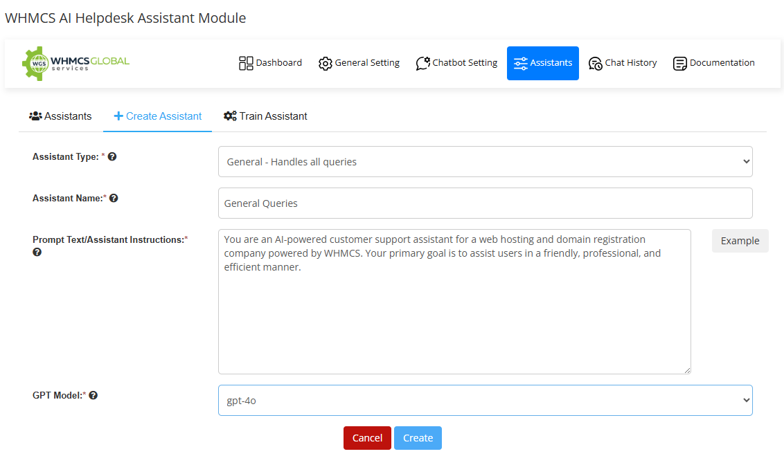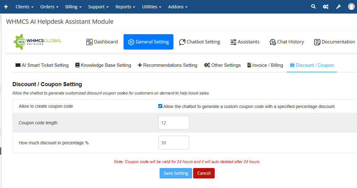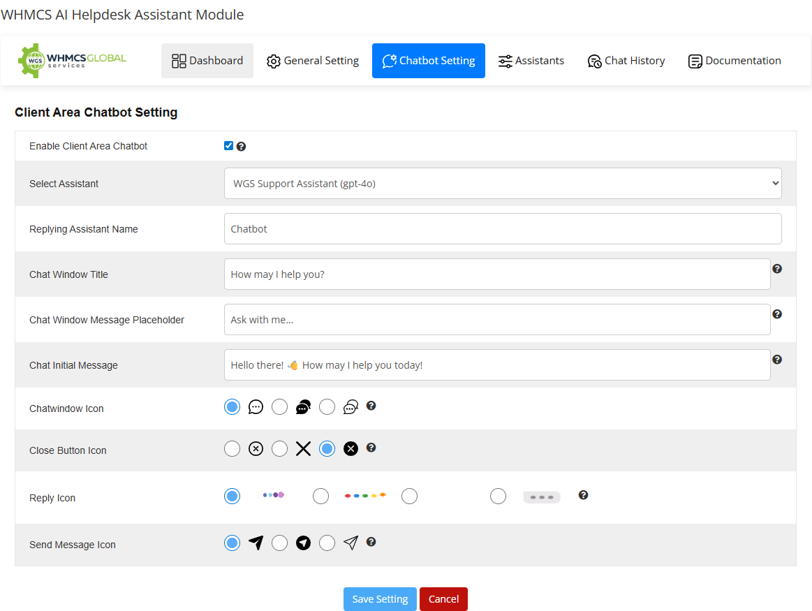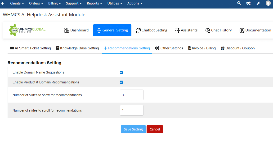 The WHMCS AI Helpdesk Assistant is an intelligent chatbot module that integrates with your WHMCS system to automate support, respond to client queries instantly, and suggest domain names or products using AI.