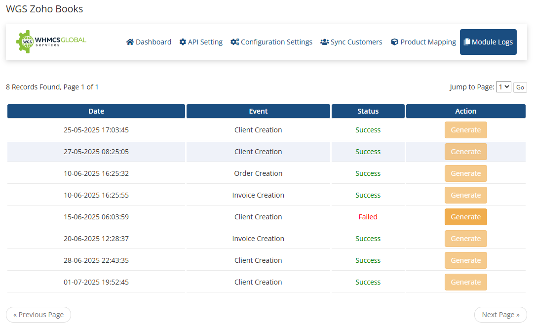 When a product or service is ordered in WHMCS, the integration automatically records the order in Zoho Books as a sales transaction. It simplifies order management and ensures that all sales data is properly reflected in your accounting system without any manual intervention.
